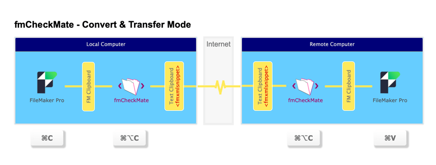 - ⌥⌘C - On the remote computer convert the fmxml from the clipboard with fmCheckMate